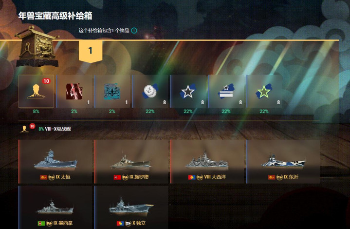 当然,军械库还上架了“烛龙的首饰盒”和“混沌之匣”两种高级补给箱,箱子能开出各种特殊战舰和C系金币战舰,而通过这两款补给箱还有机会获得的“年兽宝藏”补给箱,更是能开出东沂、墨西拿、X独立这三艘全新战舰,这几艘战舰会在后续版本加入钢铁厂,但如今玩家将可以提前体验!